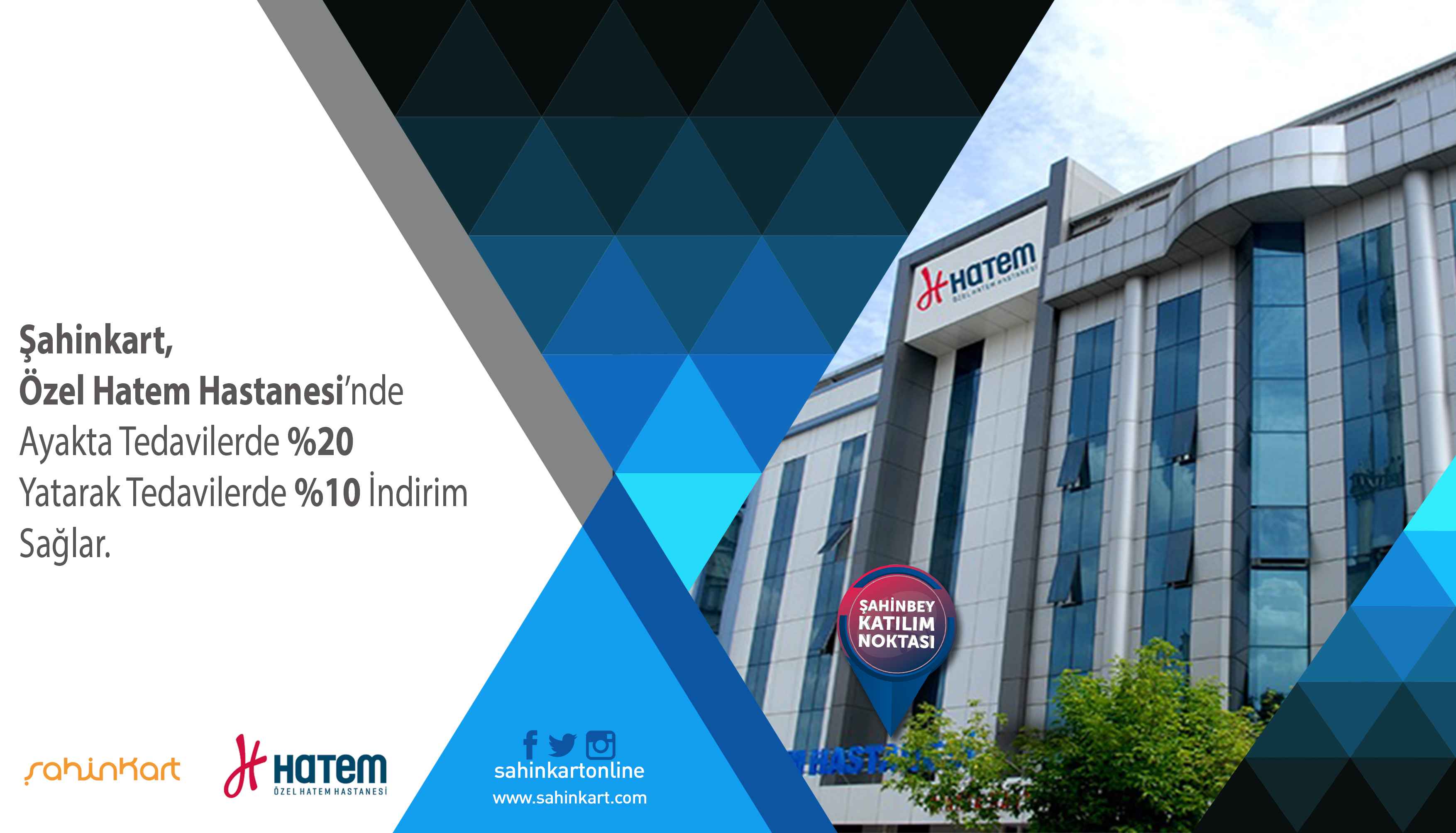 Özel Hatem Hastanesinde tüm özel sağlık hizmetlerinde geçerli %20 indirim Şahinkartınıza tanımlanmıştır.